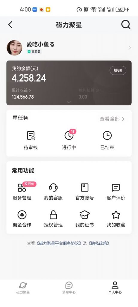 磁力聚星是快手的一个任务推广平台