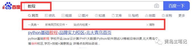 再举个例子:教程这个词根,我们去百度上搜下,看看筛选1天以内都有哪些。