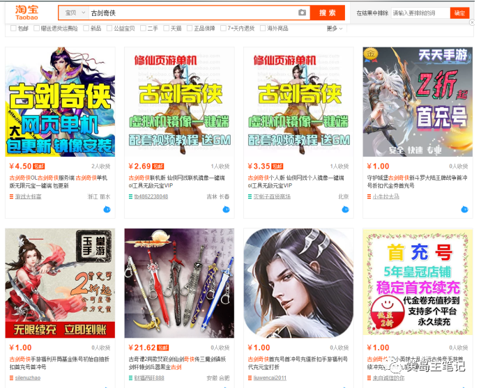 既然我们发现了这个古剑奇侠,我们就要去分析下淘宝上有多少人去上架了,然后去看看销量最好的那个品,我们要以这个商品销量最好的看齐。