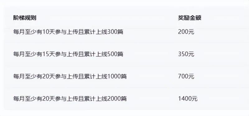 简单来讲一个月上传2000份资源就能获得1400元收益,大家明白这还只是平台额外的奖励,还没有去算这些投稿的收益。