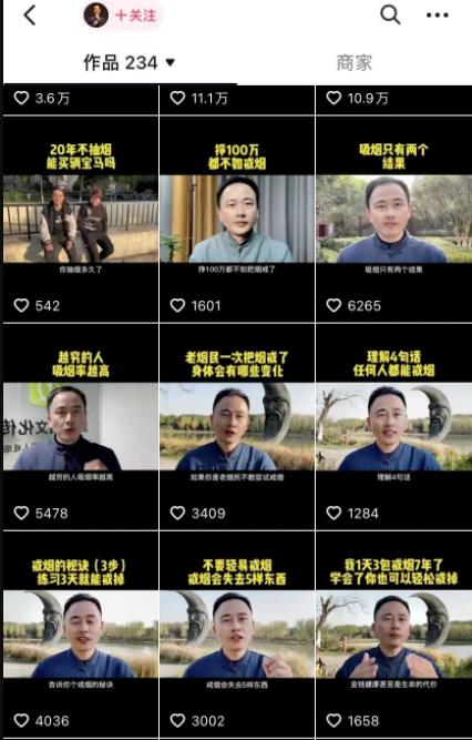 今天刷抖音,发现有人在发教人戒烟的视频,而且播放量不低。