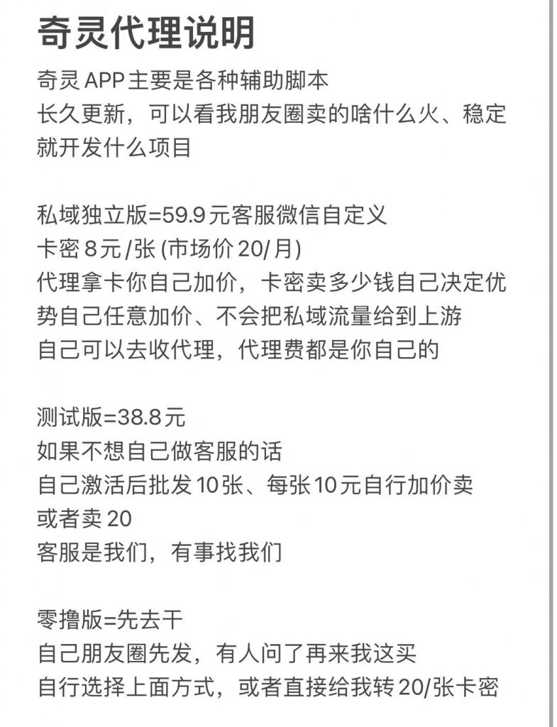 脚本也招收代理,59元自己做代理,拿卡密超低价,咨询小哥哦!