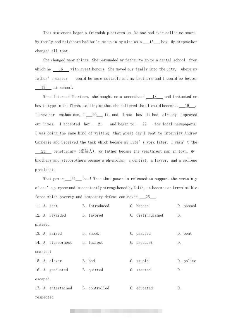 2019-2020年北京市房山区高二英语下学期期末试题及答案(Word版)8个月前发布045142019-2020年北京市房山区高二英语下学期期末试题及答案(Word版)此内容为付费资源,请付费后查看会员专属资源超级会员免费您暂无购买权限,请先开通会员开通会员类型Word页数15 页大小859.55 KB付费资源已售 562 预览已结束,还剩12页未读,下单本商品后可免费下载高清完整文档 © 版权声明文章版权归作者所有,未经允许请勿转载。THE END高中英语 喜欢就支持一下吧点赞14 分享QQ空间微博QQ好友海报分享复制链接收藏