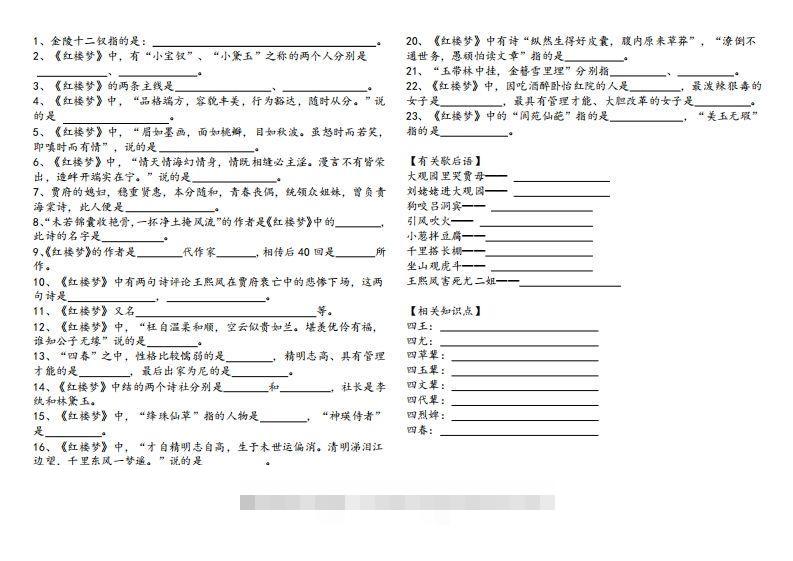 《红楼梦》知识汇总6个月前发布02514《红楼梦》知识汇总此内容为付费资源,请付费后查看¥29.9超级会员免费立即购买您当前未登录!建议登陆后购买,可保存购买订单类型Pdf页数3 页大小226.31 KB付费资源已售 562 ——预览已结束,还剩1页未读——下单本商品后可免费下载高清完整文档 © 版权声明文章版权归作者所有,未经允许请勿转载。THE END幼升小 喜欢就支持一下吧点赞14 分享QQ空间微博QQ好友海报分享复制链接收藏