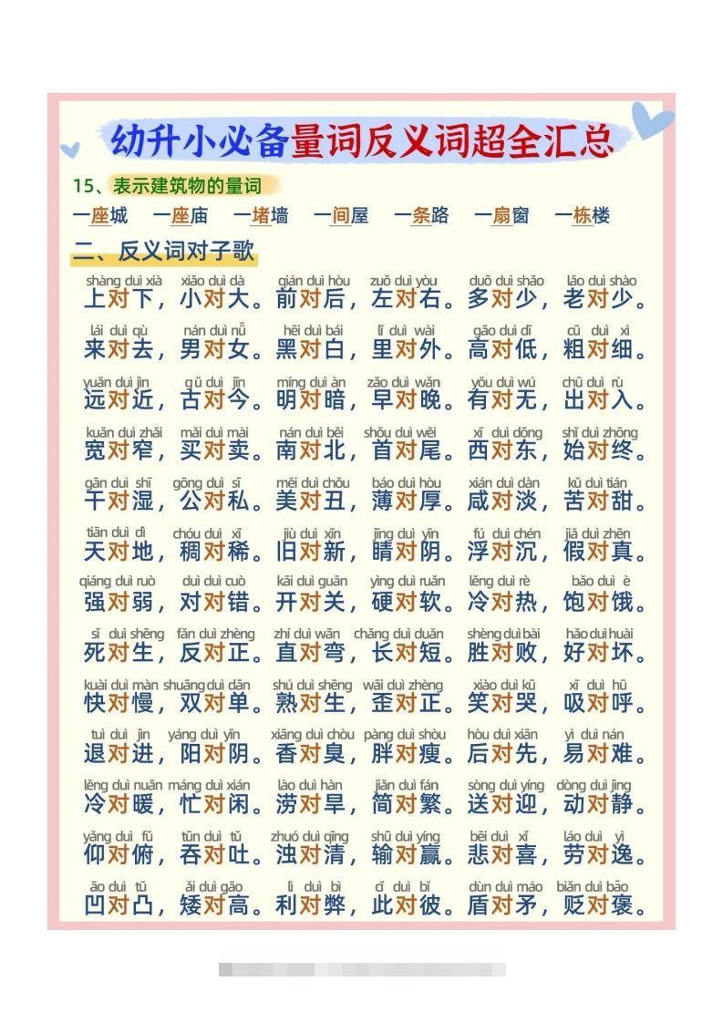 幼小衔接必备量词反义词汇总7个月前发布02915幼小衔接必备量词反义词汇总此内容为付费资源,请付费后查看¥29.9超级会员免费立即购买您当前未登录!建议登陆后购买,可保存购买订单类型Pdf页数8 页大小2.31 MB付费资源已售 562 预览已结束,还剩5页未读,下单本商品后可免费下载高清完整文档 © 版权声明文章版权归作者所有,未经允许请勿转载。THE END幼升小 喜欢就支持一下吧点赞15 分享QQ空间微博QQ好友海报分享复制链接收藏